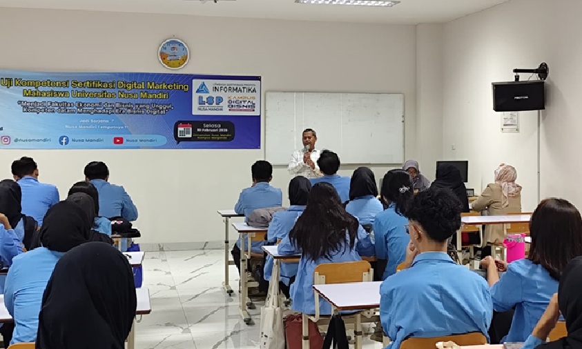 NusamandiriNews, Depok–Fakultas Ekonomi dan Bisnis (FEB) Universitas Nusa Mandiri (UNM) sebagai Kampus Digital Bisnis kembali menegaskan komitmennya dalam mencetak lulusan kompeten dan siap bersaing melalui penyelenggaraan Uji Kompetensi Sertifikasi Mahasiswa Skema Digital Marketing. Kegiatan ini digelar pada Selasa (10/2) di Universitas Nusa Mandiri Kampus Margonda, Jl Margonda Raya, No 545, Pondok Cina, Beji, Depok.