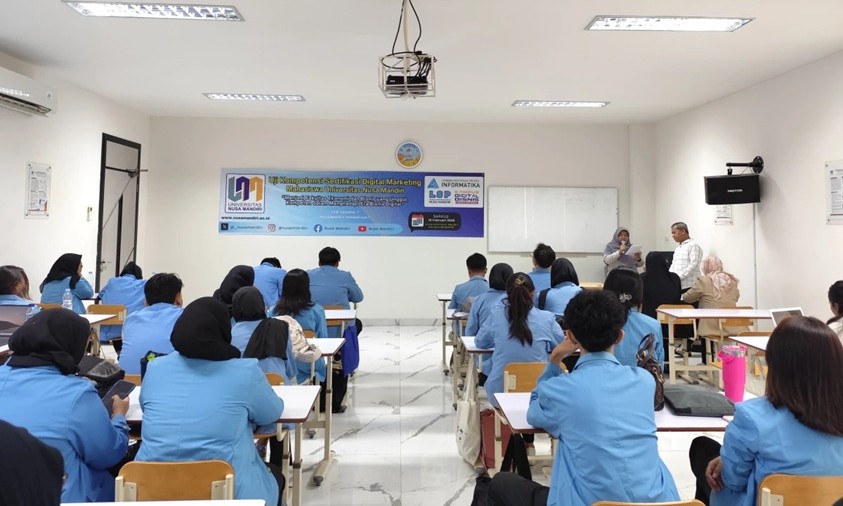 NusamandiriNews, Depok — Upaya menyiapkan lulusan yang unggul dan siap bersaing di era transformasi digital terus diperkuat Program Studi (prodi) Manajemen Universitas Nusa Mandiri (UNM). Salah satunya melalui pelaksanaan Uji Kompetensi skema Digital Marketing yang diikuti mahasiswa Prodi Manajemen dengan tema “Menjadi Fakultas Ekonomi dan Bisnis yang Unggul, Kompeten dalam Menghadapi Era Digital.”