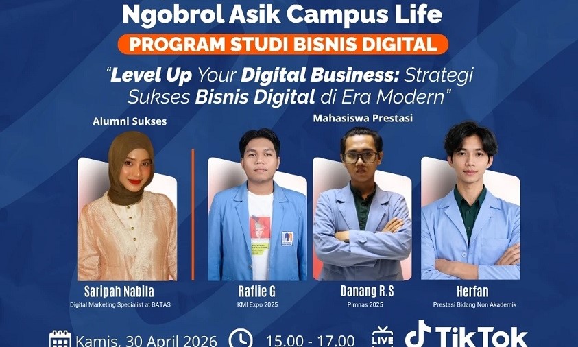 NusamandiriNews, Jakarta — Universitas Nusa Mandiri (UNM) sebagai Kampus Digital Bisnis kembali menghadirkan kegiatan inspiratif melalui talkshow NiCE (Ngobrol Asik Campus Life) yang akan digelar pada Kamis, 30 April 2026. Mengusung tema “Level Up Your Digital Business: Strategi Sukses Bisnis Digital di Era Modern”, acara ini dirancang untuk membekali peserta dengan wawasan dan strategi praktis menghadapi industri digital yang terus berkembang.