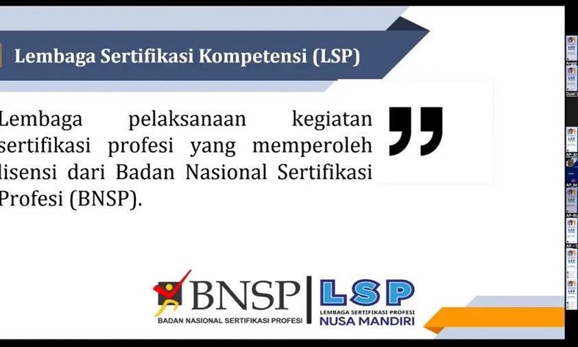 Sementara itu, Direktur LSP Nusa Mandiri, Sidik, menegaskan pentingnya sertifikasi sebagai bekal utama mahasiswa sebelum terjun ke dunia kerja.