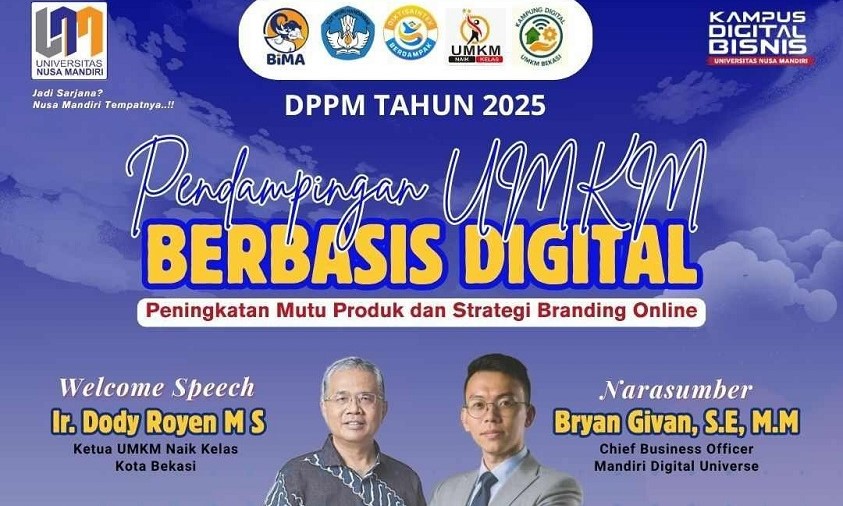 NusamandiriNews, Bekasi – Dalam upaya mempercepat transformasi digital sektor usaha kecil, Universitas Nusa Mandiri (UNM) sebagai Kampus Digital Bisnis, kembali menunjukkan komitmennya terhadap pemberdayaan pelaku Usaha Mikro, Kecil, dan Menengah (UMKM) melalui kegiatan Pendampingan UMKM Berbasis Digital.