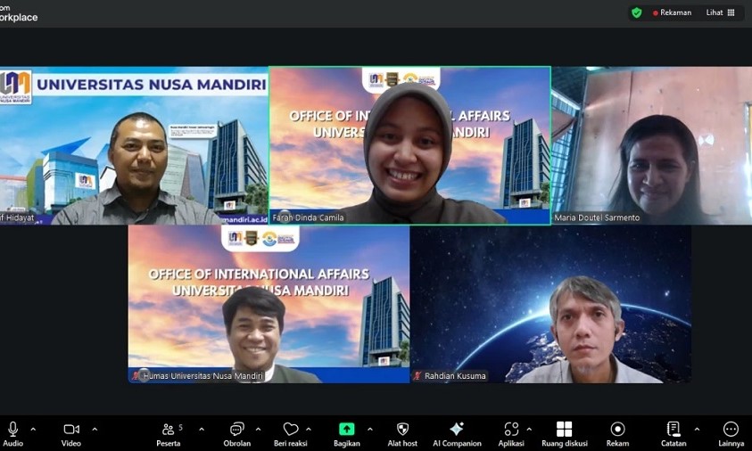 NusamandiriNews, Jakarta — Universitas Nusa Mandiri (UNM) sebagai Kampus Digital Bisnis terus memperkuat langkah internasionalisasinya melalui Kantor Urusan Internasional (KUI) dengan menggelar rapat daring proses Penerimaan Mahasiswa Baru (PMB) Warga Negara Asing (WNA) asal Timor-Leste, pada Jumat (9/1). Kegiatan ini menjadi bagian dari komitmen UNM dalam menghadirkan layanan pendidikan tinggi yang inklusif dan berdaya saing global.