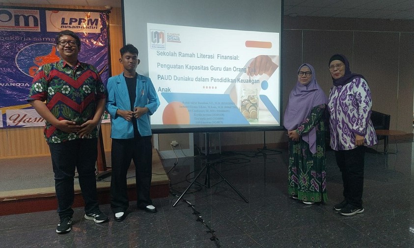 NusamandiriNews, Bogor–Sebagai Kampus Digital Bisnis yang berkomitmen mencerdaskan masyarakat melalui pendidikan dan pemberdayaan, Universitas Nusa Mandiri (UNM) kembali menunjukkan kiprahnya melalui kegiatan Pengabdian kepada Masyarakat (PkM). Program Studi Manajemen Fakultas Ekonomi dan Bisnis (FEB) UNM menggelar pelatihan bertema “Belajar Mengelola Uang dengan Bijak: Literasi Keuangan untuk Guru, Orang Tua, dan Anak Usia Dini” pada Sabtu (18/10), bertempat di Gedung DPRD Kota Bogor.